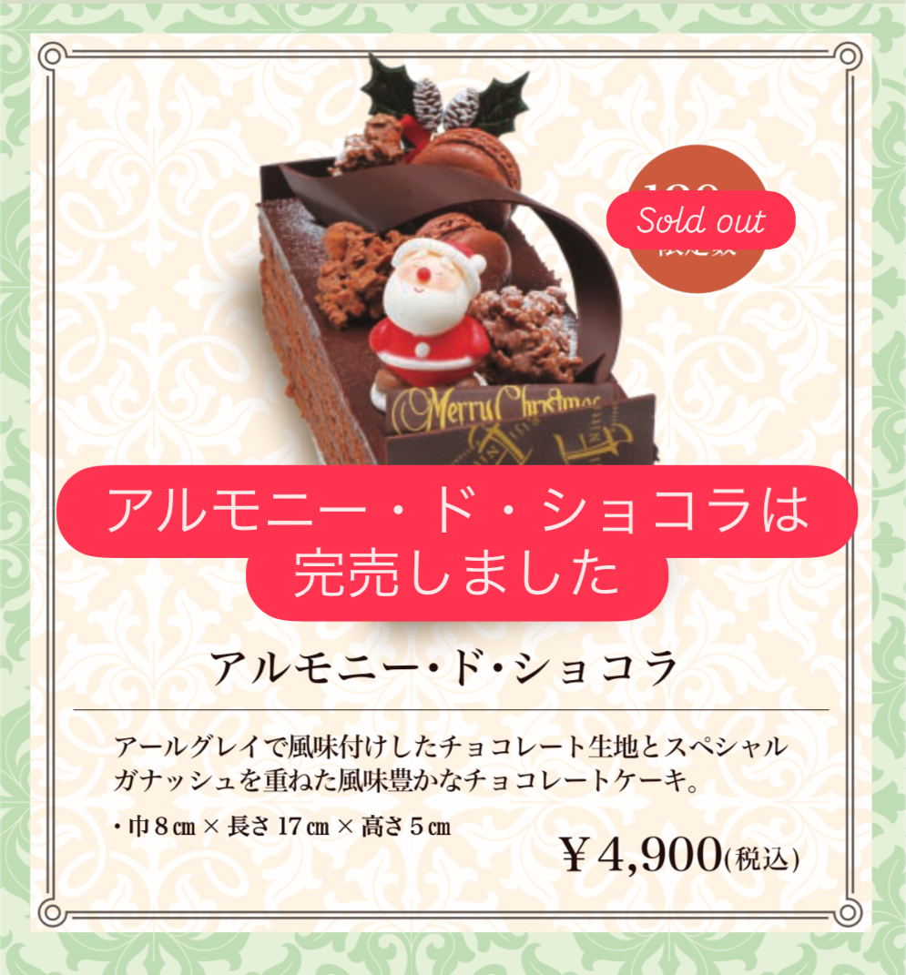 ★アルモニー・ド・ショコラ完売しました