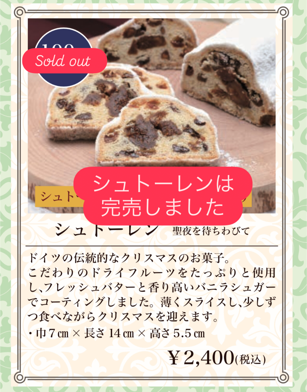 ★シュトーレンが予約の定数に達しました