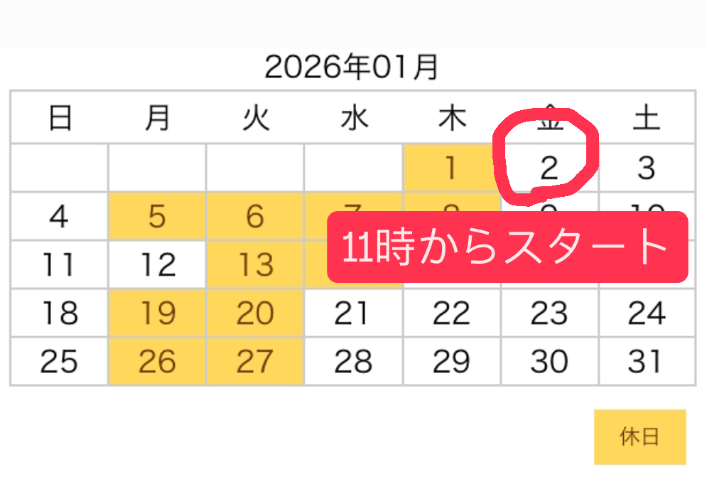 年始1月2日(金)は11時からの営業スタートとなります